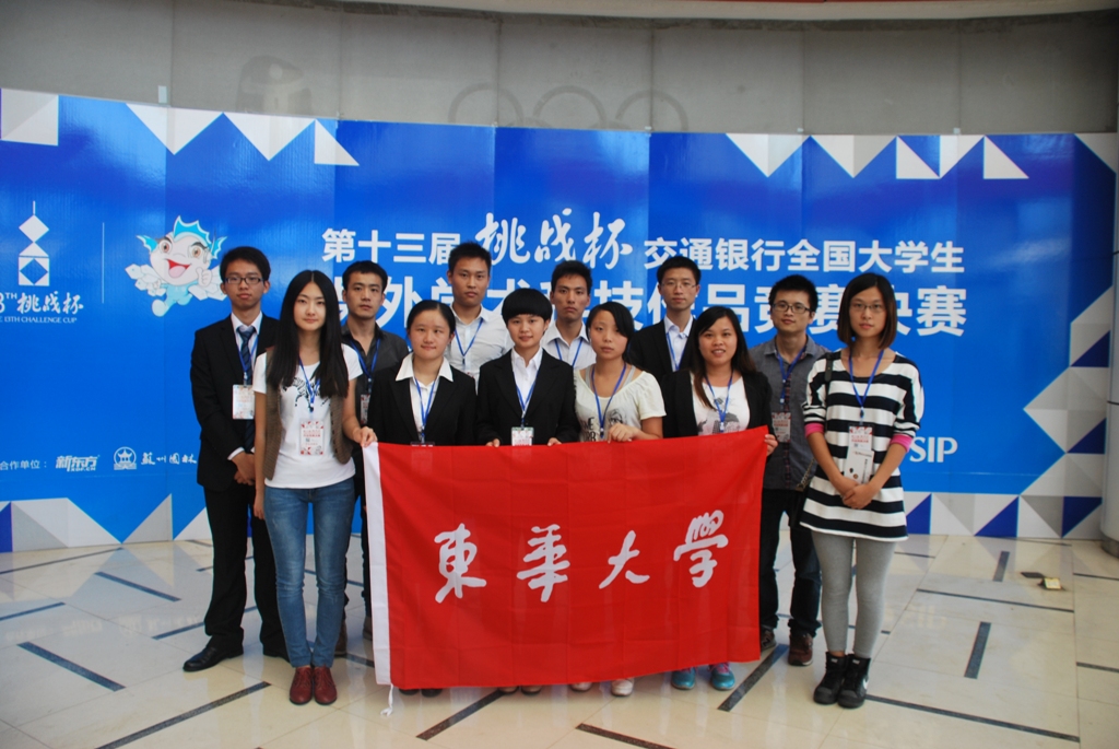 本届“挑战杯”竞赛从2012年12月启动,经过校内选拔赛、上海市选拔赛、全国复赛、决赛等层层选拔,我校共有6件作品获奖。纺织学院张琳婕等同学的作品《新型三维正交结构防弹防刺织物的开发》、材料学院张延等同学的作品《前沿LED照明技术的探索——新型发光玻璃及其大功率白光LEDs的封装与应用》、材料学院路瑶等同学的作品《新型STF/UHMWPE软体防护材料》获二等奖,纺织学院魏宝春等同学的作品《一种基于纺织业牛仔织物边角料再利用的聚丙烯基复合材料制备及其制品开发》、纺织学院孙淑瑶等同学的作品《面料湿态贴体舒适性评价系统》、计算机学院施昊同学的作品《网络服务整合后的个性化推荐系统》获三等奖。此外, 纺织学院丁若垚等同学的作品《高品质麻类纤维产品生物脱胶产业化生产技术》获“累进创新奖”金奖,材料学院张延等同学的作品《前沿LED照明技术的探索——新型发光玻璃及其大功率白光LEDs的封装与应用》获“交叉创新奖”三等奖。竞赛期间,材料学院王依民、江莞、王连军,纺织学院许福军,校团委书记韩哲宇等老师在现场对学生予以指导。在决赛作品展览期间,我校作品受到广泛关注,共青团上海市委副书记杨元飞等参观了我校项目并向参赛学生表示慰问和鼓励。《中国青年报》(10月17日)以《团旗聚集创新“小伙伴”——高校团组织为大学生自主创新搭建平台》为题,报道了我校团组织开展大学生课外科技创新活动的情况和做法。