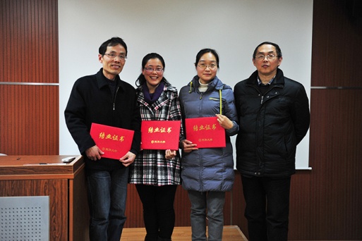 在为期四天的学习中,学员们聆听了“数字时代教育信息化的新境界”“泛在学习环境下的教学资源设计”“开放大学移动学习活动设计”等多场专题讲座,在“未来课堂与微课程教学法”“微课程制作技巧”等方面获得实践指导,并亲手设计和制作了属于自己的微课程作品。为充分调动大家的积极性,在学员微课程作品展示汇报会上,主办方特别设置了微课程比赛环节。19组结合各自学科特点,主题不同、风格各异、形式丰富的学员微课程作品依次展现,获得评委的认可与好评。经评选,最终,我校管理学院教师周建亨、于君英制作课程作品《供应链管理(啤酒游戏)》,我校外语学院教师胡云雁、赵彦萍制作作品《日语副助词》上海外国语大学教师于文浩、李雪莲、严泽群制作的《九州之由来》分获一、二、三等奖。