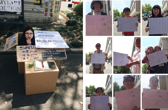 服装设计专业大二学生小高,去年参加创意市集的作品《凹》(一衣多穿作品)受到好评。今年在现场记者注意到,她是一个人“躲”在箱子里收集大家的手作画,然后将收集来的创意进行加工,或是印花或是制作成配饰,最终结合自己的专业,设计制作成成衣。这种看似“行为艺术”的创意方式让她感受良多:“在我收集创意的过程中,发现很多人羞于展现自己的创作能力,但实际上每个人都是想法的创造者和传递者。”自去年9月起,小高就开始做这件事情,“我觉得我们以往做东西总是以自己为中心,甚至是强迫他人来接受你的观念,不如这次和其他人合作、和陌生人合作。”半年来,她多次拿着两块大板子在街头、商场邀请路人提供手作画,每次会指定不同的主题,“你今天怎么样?”“你最想吐槽的是?”“用一种食物来形容你的心情”,这些收集创意的过程对小高来说是贯穿整个创作过程的。