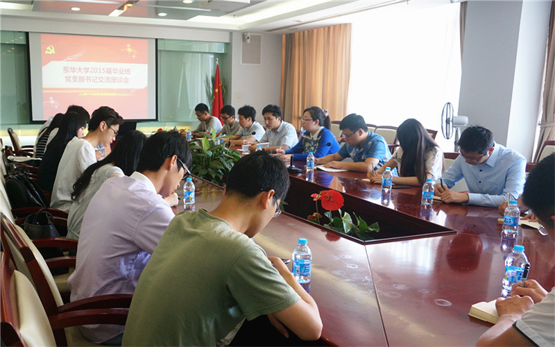 6月5日,2015届毕业班党支部书记交流座谈会在松江校区举行,27位来自各学院毕业班的学生党支部书记齐聚一堂,说经验、谈感想、话未来,就学生党建工作传承创新展开深入交流。校党校副校长徐玥、党委组织部组织员吴靖参加座谈会。