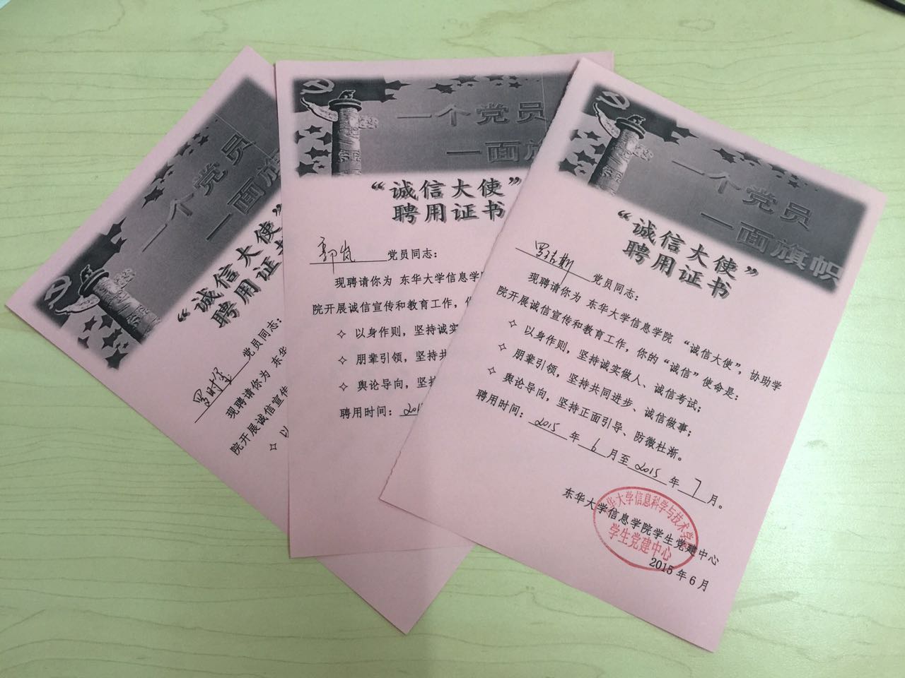 近日,信息学院在学生中启动了一场别有特色的诚信考风考纪教育宣传活动,为24名本硕学生党员送上了一份特别的“端午节”礼物——“诚信大使”聘书。