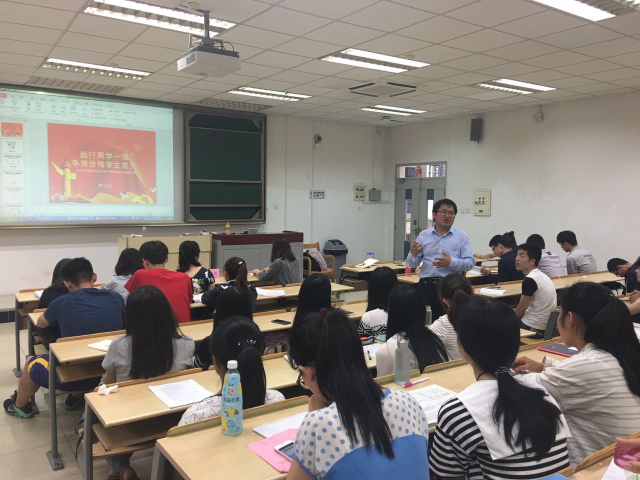随后孙宝忠教授结合庆祝建党95周年,联系自身工作实际,运用身边事例,现身说法,对全体学生党员提出了要求与希望。他讲到,做合格学生党员要做到“四讲四有”,即讲政治、有信念;讲规矩、有纪律;讲道德、有品行;讲奉献、有作为,时刻严格要求自我。注重自身的成长成才,从成长、成功、成事和成熟四个方面不断锤炼自己。成长离不开党组织的培养,离不开群众的支持,更离不开自己的努力。成功则是靠内力与外助,加之机遇的垂青。成事要求我们要认真、有恒心、做事为人讲求方式方法。成熟则是要以“淡、静、藏”为行为向导,做到淡泊名利宁静致远。总之,作为一名学生党员,要增强政治意识,认真履行责任,不断提高素质能力,坚持改进工作作风,以高标准、严要求来做一名合格党员。孙宝忠教授在讲座最后还与现场的学生党员和重点发展对象进行了互动交流,从学业、工作、生活等各方面为学生党员答疑解惑。