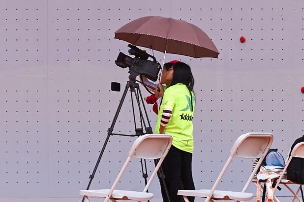 每当选手跃向下一个支撑点或是手碰触top点的刹那,志愿者们用“加油”“come on”等不同语言同时为选手加油,即使挑战失败仍然掌声雷动。即使是雨天,负责拍摄的志愿者也会认真记录比赛的每一瞬间。他们不愿错过每一个细节,这也是志愿服务最能让人感受到温暖和收获感动的原因所在。