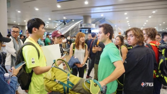 图一:抵沪参赛者见到热情的志愿者时长途飞行的疲惫一扫而光。