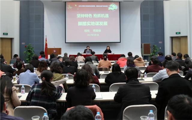 蒋昌俊结合新要求新机遇新任务新挑战,讲述了学校未来发展目标和具体举措,并从顶层设计、人才培养、科学研究、人才队伍、开放合作、条件建设和管理改革等方面深入解读了2017年学校重点工作任务。他指出,“统筹推进世界一流大学与一流学科建设”、“2011”协同创新计划、“高峰高原学科”建设等国家和上海关于高等教育改革计划的落实,是学校发展的重大机遇,关乎学校全局和未来,学校上下要充分发挥优势与潜力,自觉地对接国家战略和区域发展需求,提升学科建设水平和科研成果贡献度。