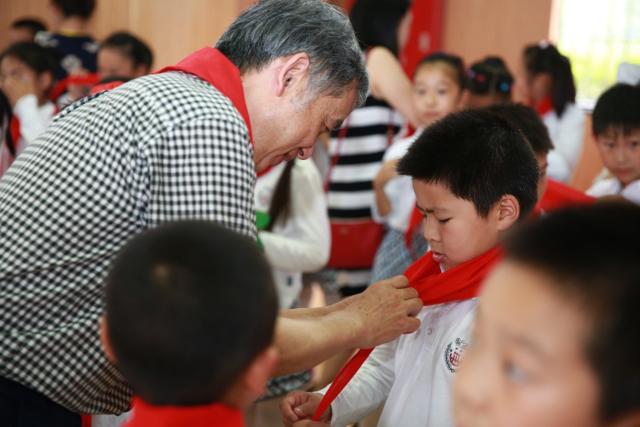6月1日,“立志向,有梦想”——东华附校2016学年新队员入队仪式在东华附校举行,400多名东华附校二年级小学生在这一天戴上了鲜艳的红领巾,成为一名光荣的少先队员。校关工委副主任浦解明老师出席活动,并代表关工委老同志为附校孩子们授中队旗。我校关工委老同志代表俞保安老师、范崇文老师、贺善侃老师、刘玉老师、王依民老师及党委组织部胡琳老师,东华附校校长周卫斌,副校长张云洁、高晓红、李燕华等行政领导,以及附校家长代表和二年级全体师生参加了入队仪式。