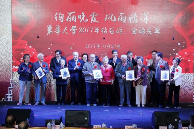 绚丽晚霞,风雨情深。多年的默默陪伴,相濡以沫;多年的坦诚相待,风雨兼程。虽然青丝已经变成了白发,不变的是我们坚守的心。10月27日下午,重阳佳节前夕,我校在延安路校区三教二楼报告厅为191对离退休老同志举行“钻石婚”“金婚”庆典活动。校党委书记朱民、上海市高校退管会常务副主任李玉华、校党委副书记崔运花、副校长卿凤翎、市高校退管会原常务副主任沈惠君、市高校退管会副秘书长孙大卫等领导及相关职能部处负责人到会祝贺。会议由校退管会第一副主任王以刚主持。