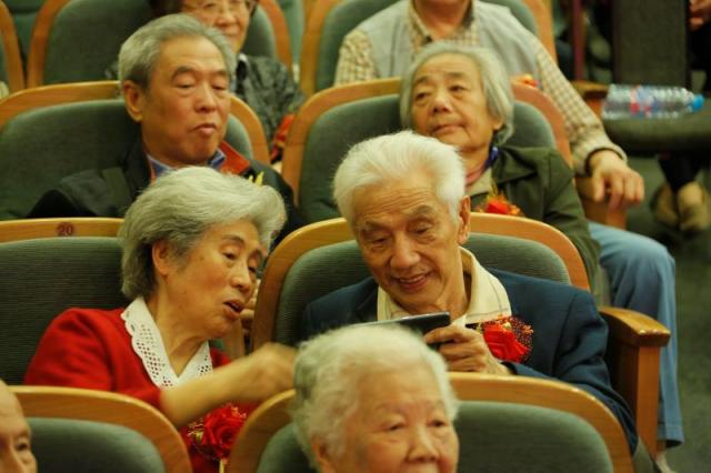 潘寿民老师代表参加庆典的老同志在会上发言,他简要回顾了自己和老伴走过的50年婚姻生活,他说,人生是不断追求的过程,也是不断奉献的过程,事业如是,家庭也如此。这次庆典活动老同志们十分期待,感谢学校和退管会对老同志们的爱心与付出。