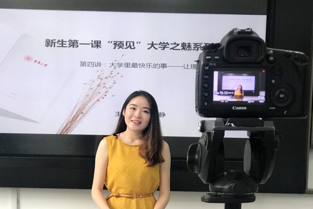 (2014级上海市优秀毕业生刘静静在微课录制现场)