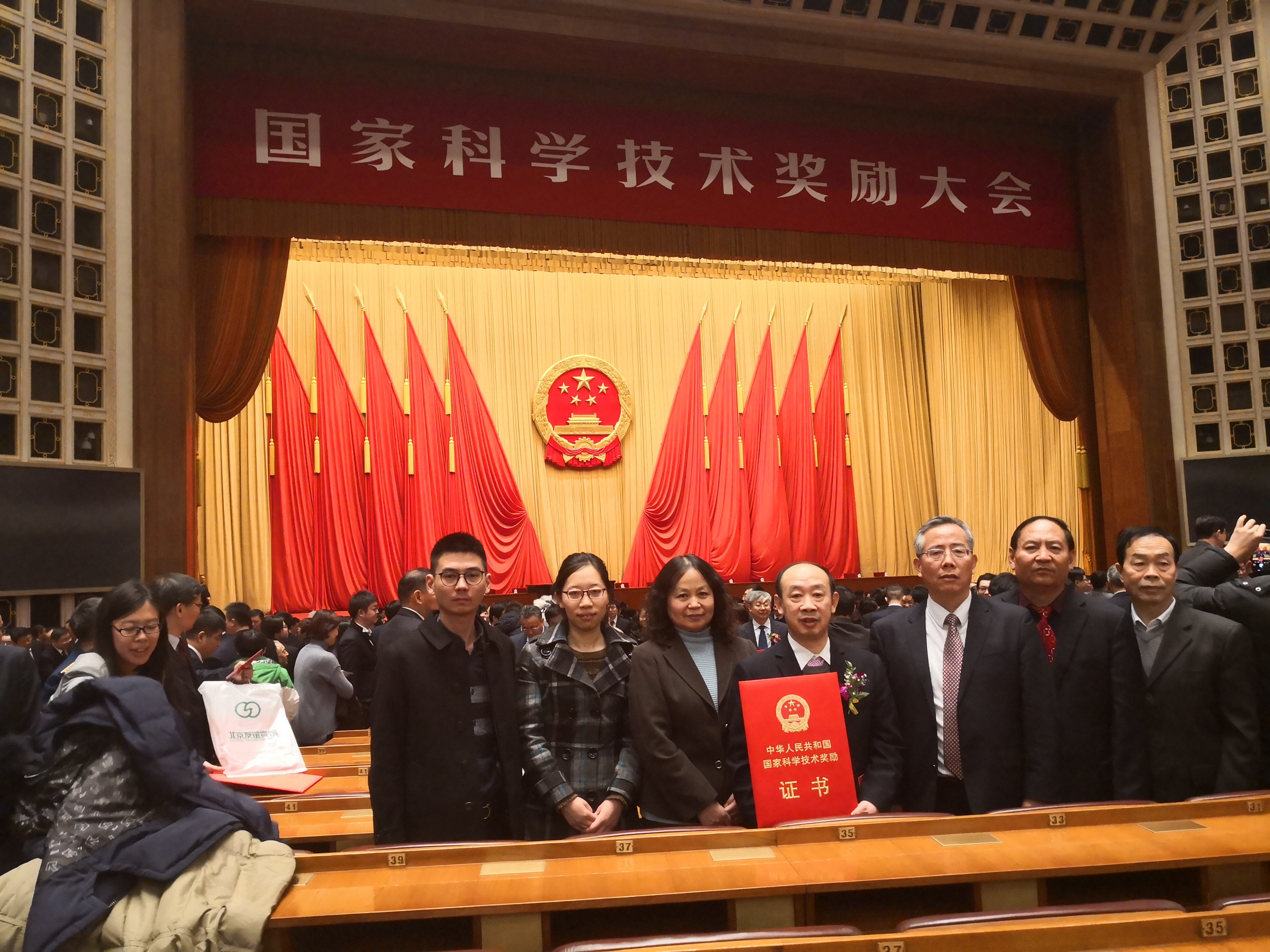 (团队部分老师及合作企业成员在国家科技奖颁奖现场,左四为孙以泽教授)