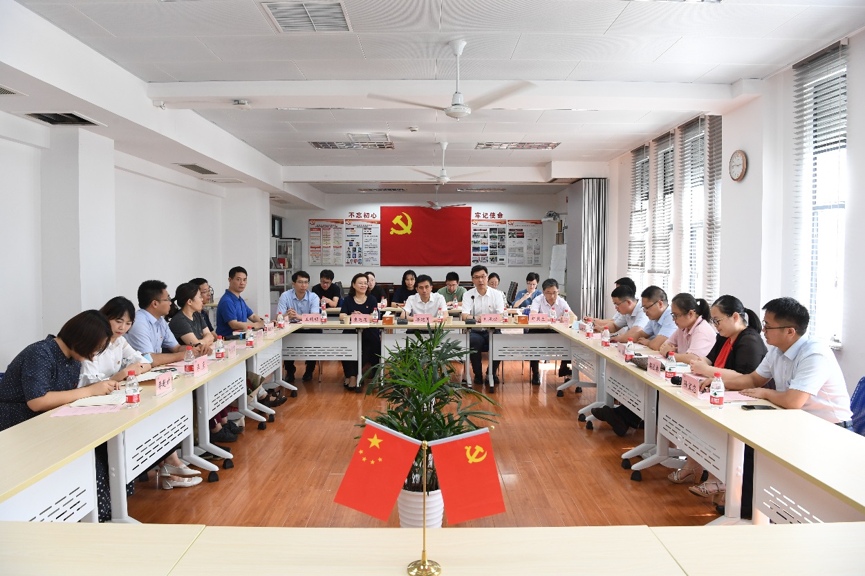 根据教育部党组和上海市委关于开展党史、新中国史、改革开放史、社会主义发展史(以下简称“四史”)学习教育的工作要求以及学校党委统一部署,近期全校各基层党组织陆续开展“四史”学习教育主题党日活动。7月21日,市教卫工作党委副书记滕建勇来到基层联系点——纺织学院高技术纺织品系党支部参加“学好四史,忆初心,担使命”主题党日活动。校党委书记刘承功、党委副书记崔运花、副校长舒慧生,市教卫工作党委组干处和校党委办公室、组织部、纺织学院有关负责人以及高技术纺织品系党支部全体党员参加活动。