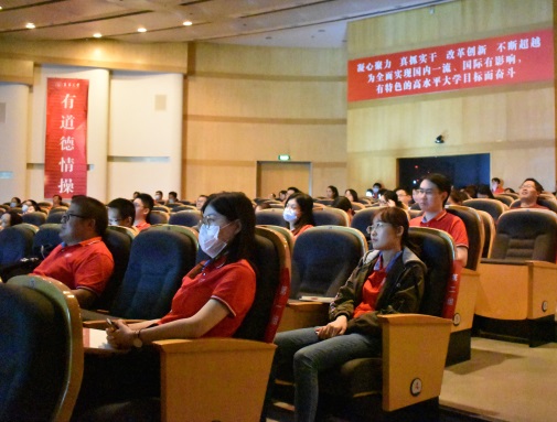“师德——教师素质的灵魂”,贺善侃从敬业、育人、师表和师风四个维度把何为“师德”说清说透,更是勉励青年教师要以“博学”作为履行师德的有力支撑,永葆勇于创新、奋发进取的精神姿态。袁琴华从攻克国家国防和航天科技领域重大课题的科研工作说起,用自己的故事阐释了科学工作者应有的严谨、拼搏、创新、协作精神。