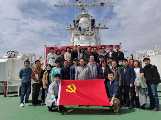 师生党员们登上相当于10层楼高的“远望1号”,跟随专业讲解在天线甲板、艏甲板、艉甲板驻足,在甲板上聆听叶剑英元帅的七律诗《远望》和远望号系列测量船的发展历史,在驾驶舱里近距离接触远望1号服役期间曾使用的科考仪器设备,详细了解救生艇、船用锚机等设备的用途,认真学习水手结打法以及救生衣使用等基本海上救生知识。党员们一边凝望着毛泽东同志题写的“远望”,一边抚摸着略显斑驳的扶手,眺望着浦江两岸,心中的激动之情难以抑制,仿佛回到了那个热血澎湃的年代,深切体会着巍峨船身承载的“奉献、团结、拼搏、严谨、开拓”的远望精神。