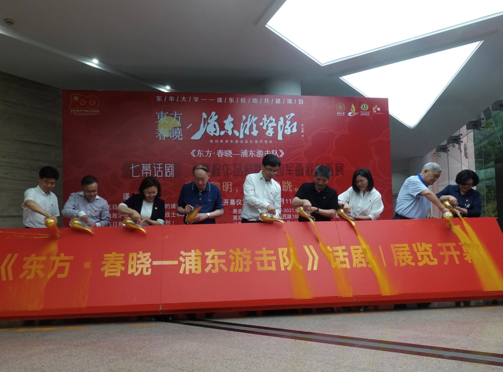 近日,由我校党委组织部、党委宣传部,中共上海市浦东新区航头镇委员会、浦东新区文化艺术指导中心等单位共同指导,服装与艺术设计学院党委、中共浦东新区航头镇下沙社区委员会、浦东新区航头镇文化服务中心共同主办的《东方·春晓—浦东游击队》七幕话剧/课程作品展暨新四军画派书画展在延安路校区逸夫楼举行了展演活动的开幕仪式。