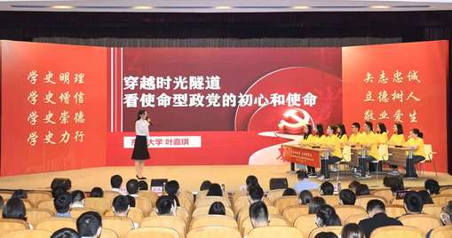 展示活动中,4位辅导员精心选取党史上的重大事件、重要人物、重要会议,带来精彩的党史学习教育主题班会。我校纺织学院辅导员叶嘉琪以中国共产党的初心和使命为主题,以党史学习社会实践为载体,用教师主导、学生朋辈引导的教学方法,带领大家乘坐“时光列车”,从使命型政党的视角切入,剖析了百年党史背后的理论逻辑,梳理了中国共产党历史使命的宏大线索,讲述建党百年的感人故事,展现党伟大征程的品格风貌和历史追求,用极具亲和力和创新性的方式对党史理论进行了阐释,兼具了内容供给的真理性和形式载体的新颖性。