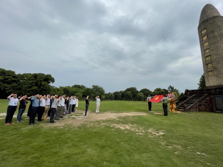 (在叶坪旧址群红军烈士纪念塔前举行敬献花篮仪式、重温入党誓词)