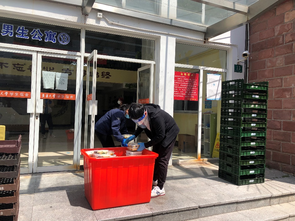 国际文化交流学院的何倩老师、时尚创意学院的李璐瑶老师、博物馆的李苏琴老师,虽然都是“女儿身”,但是每日坚持抢单送饭,做好学生最贴心的外卖员。脸上冒出的热气早就模糊了她们的视线,“没什么困难,如果学校有需要自己还可以做更多,希望全校师生都可以平平安安度过这段隔离期,为这份平安出份力。”