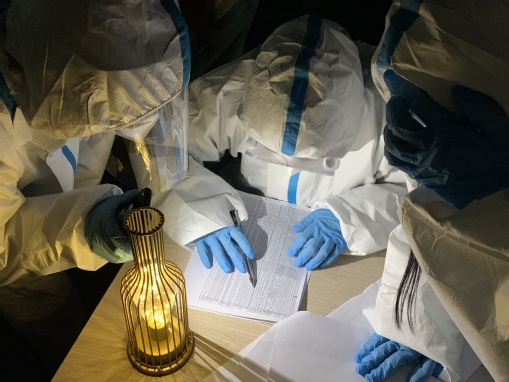 学生一日三餐的分时引导,抗原测试及核酸检测的有序组织,网格化楼栋的动态管理,数据报送与人员核查的精准校对……这是疫情防控期间学工队伍的工作日常。从黎明到深夜,学工团队24小时待命,闻令而动、冲锋在前,化身“战疫卫士”,合力保障学生的健康安全,为学生筑牢安全屏障。自延安路校区实施封控管理以来,驻楼辅导员立刻进驻15栋学生宿舍开展工作,化身守护学生的暖心“大白”,与学生同吃同住,为学生提供各项生活服务、思想引导及心理援助。松江校区静态管理期间,一边是学生静态的“非必要不出户、非必要不出楼”,一边是学工队伍忙碌的奔赴。方案制定、物资分发、核酸筛查、联络对接、信息报送、突发事件处理,日夜奋战、“黑白”坚守是学工队伍的工作常态,他们化身“战疫尖兵”,下沉式开展思政教育,用心守护学生健康安全。学生小姜动情分享,“疫情当下,老师们远离家人,守在学校陪伴我们。正因为有他们的无私奉献,所以我们可以相信前路光明,阴霾终会散去”。