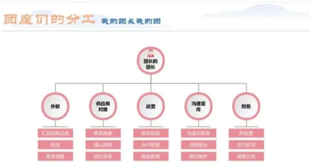 “社区团购可以看作是一个工程,团购的参与人员可以看作是工程的六大部门,包括外联部(收集居民刚性需求、提出采购计划)、供应商对接(筛选供应商资、鉴定货品内容和供货时间)、运营部(进行团购数据处理、生成团购订单)、沟通宣传部(与物业和志愿者沟通团购进展、动态、安全注意事项)、财务部(核对订单数据、付款及记账)、物资部(组织志愿者分发物资)。明确这六大部门的职责,可以确保信息流、资金流、物流的安全有效。”
