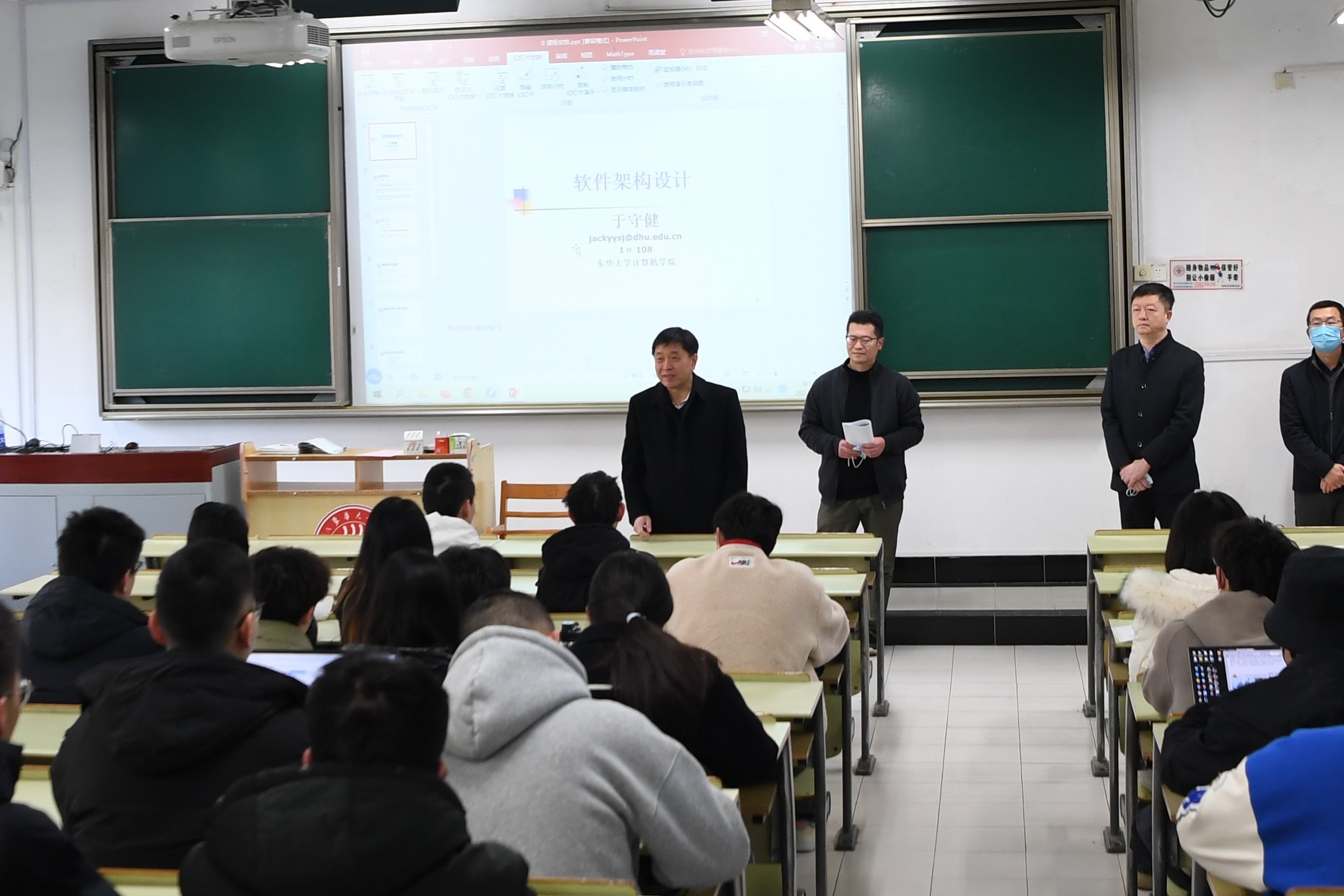 2月20日是新学期教学周的第一天,也是新型冠状病毒感染调整为“乙类乙管”之后的首个开学季,师生回归课堂,学校全面启动线下教学。党委书记刘承功、校长俞建勇、党委副书记崔运花、副校长陈革等早早来到松江校区教学楼检查新学期教学情况,并在课前与师生亲切交流。