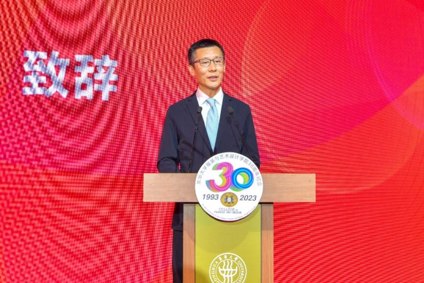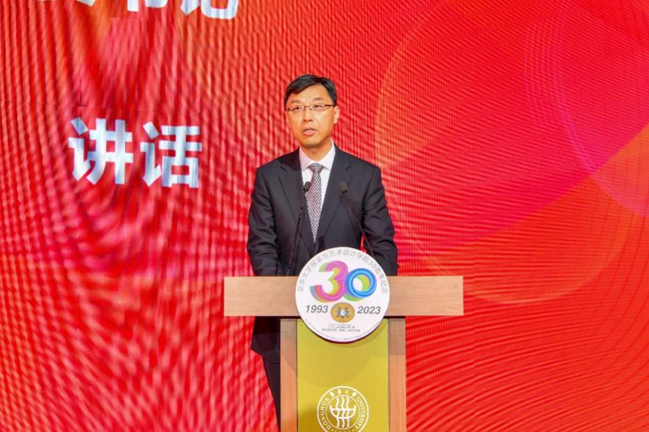 刘承功在讲话中向学院全体师生和海内外校友表示祝贺,并对各界领导嘉宾和校友的到来表示欢迎。他表示,经过多年建设与发展,学院在各方面取得长足进步,成为彰显学校办学特色和优势的华彩名片。展望未来,他强调要坚持育人为本,加强校院人才培养体系融合互动,铸魂育人,启智润心,努力培养堪当民族复兴大任的时代新人;要坚持内涵发展,对标一流水平,深化艺术、学术内涵,强化科技、数字赋能,不断拓展学科发展新领域新赛道,跑出加速度、展现新气象;要坚持全面提升,在师德修养、业务素养、育人能力等方面着力提升师资队伍建设质量和水平,完善人才多元评价机制,以一流师资支撑事业发展和“双一流”建设;要坚持扎根中国大地,紧密结合国家战略和经济社会发展,开阔国际视野、把握时代脉动、走在时尚前沿,以一流贡献更好展现担当作为。