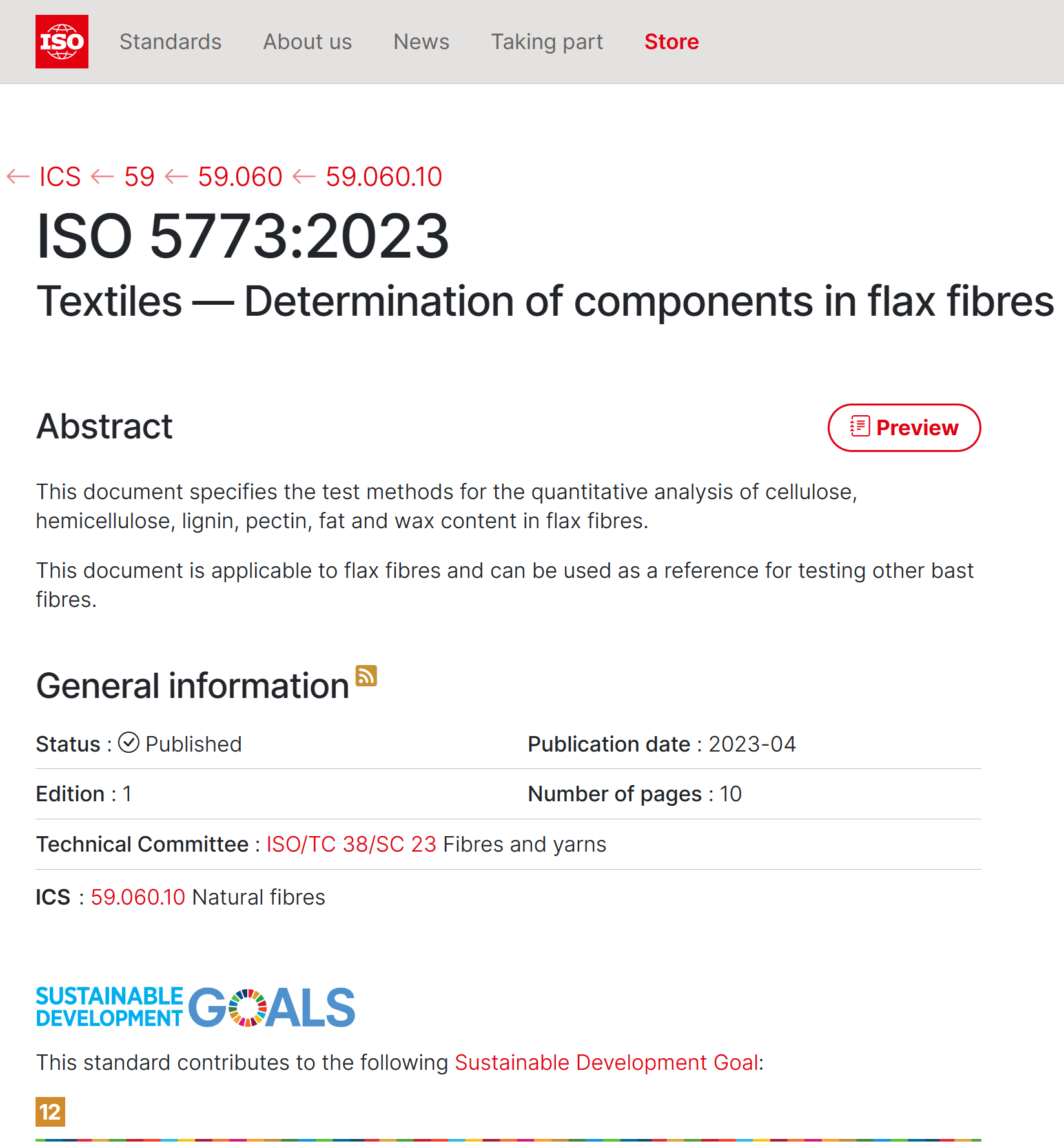 ISO 5773:2023国际标准制定工作于2019年首次提出,纺织学院李卫东领衔,工作组成员包括全球14个国家的44位专家,涉及亚麻纤维生产加工企业、经销商、研发生产单位和科研院所等单位。项目历时4年,对全球200多家亚麻纤维相关企业进行调研,历经数百次科学实验,组织召开三次ISO工作组国际会议和多轮ISO技术委员会组织的严格技术审查,该标准草案获得各国专家认可,最终于今年4月底经国际标准化委员会投票通过。